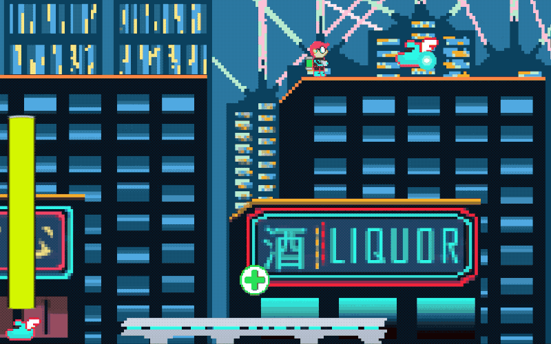 Goblin EXE is a 2D infinite runner platformer where the player runs on top of buildings in a cyberpunk city.