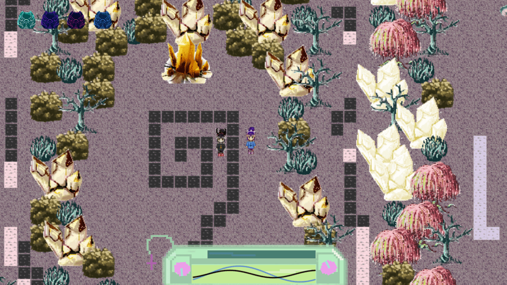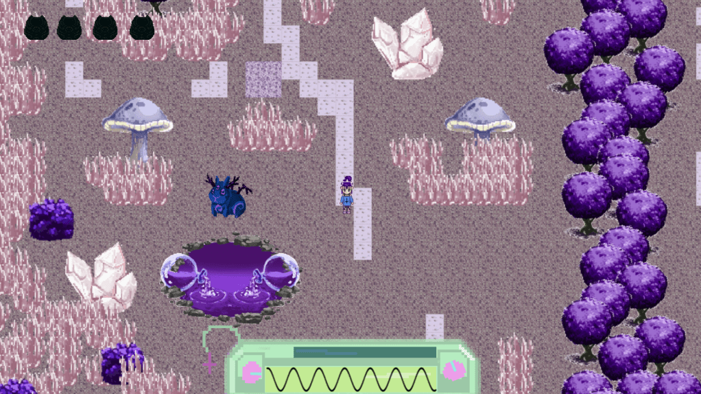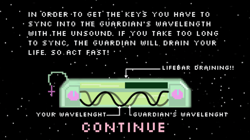 A 2D top-down game where you need to match your wavelength to the other creatures wavelength.